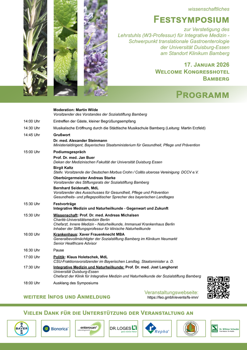 anlässlich der Verstetigung des Stiftungslehrstuhls (W3-Professur) für Integrative Medizin - Schwerpunkt translationale Gastroenterologie der Universiät Duisburg-Essen am Klinikum Bamberg